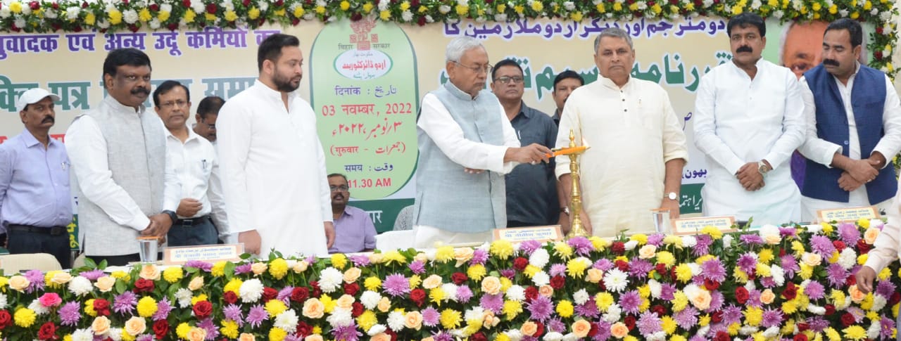 मुख्यमंत्री नीतीश कुमार ने मुख्यमंत्री सचिवालय स्थित ‘संवाद’ में उर्दू अनुवादक एवं अन्य उर्दू कर्मियों के नियुक्ति पत्र वितरण कार्यक्रम का दीप प्रज्ज्वलित कर शुभारंभ किया. कार्यक्रम में कुल 183 उर्दू अनुवादक एवं अन्य उर्दू कर्मियों को नियुक्ति पत्र वितरित किया गया है. उर्दू अनुवादक, सहायक उर्दू अनुवादक, निम्नवर्गीय उर्दू लिपिक और निम्नवर्गीय हिंदी लिपिक शामिल हैं।.