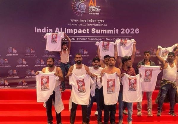 शुक्रवार को AI इम्पैक्ट समिट एग्जीबिशन हॉल में उस समय ड्रामा हुआ जब IYC वर्कर्स सरकार और इंडिया-US ट्रेड डील के खिलाफ नारे लिखी टी-शर्ट पकड़े घूम रहे थे, जिसके बाद सिक्योरिटी वालों ने उन्हें वहां से हटा दिया.