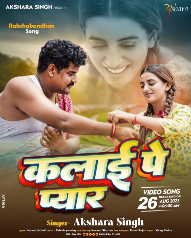 भाई और बहन के अटूट प्रेम का त्यौहार रक्षाबंधन की तैयारी शुरू हो गई है. इसी बीच भोजपुरी की सुपरस्टार एक्टर और सिंगर अक्षरा सिंह का रक्षाबंधन स्पेशल गाना “कलाई पे प्यार” रिलीज कर किया गया है, जो उनके फैंस और भोजपुरी के चाहने वालों को बेहद पसंद आ रही है. इस गाने में अक्षरा सिंह अपने भाई की कलाई पर राखी बांधती नजर आ रही हैं. अक्षरा सिंह का या खूबसूरत गाना उनके अपने ऑफिशल यूट्यूब चैनल से रिलीज हुआ है. इस गाने के लिरिक्स बेहद खूबसूरत है, जिसे अक्षरा ने अपनी आवाज देकर और कर्ण प्रिय बना दिया है.