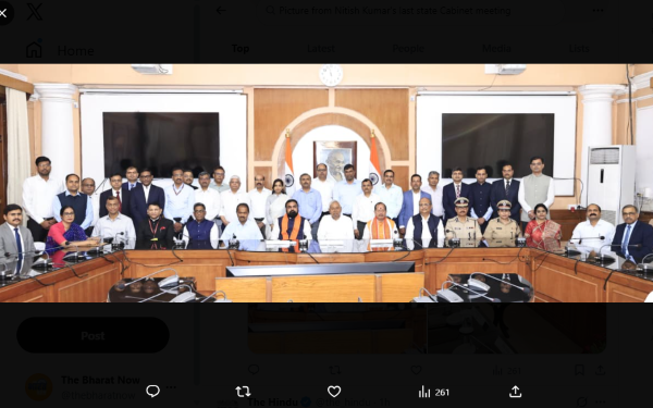 नीतीश कुमार ने मंगलवार को पटना में अपनी आखिरी कैबिनेट मीटिंग के बाद अपने कैबिनेट साथियों के साथ एक तस्वीर भी खिंचवाई.