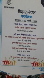 बिहार दिवस आयोजन के तीसरे और अंतिम दिन गांधी मैदान के मुख्य मंच पर गायक दिपाली सहाय और ऐश्वर्य निगम का कार्यक्रम होगा.ये कार्यक्रम शाम 7 बजे से रात 8.15 तक चलेगा.