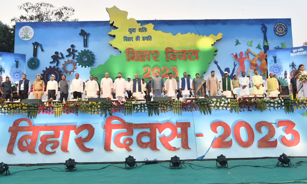 पटना :पटना में सीएम नीतीश कुमार , उपमुख्यमंत्री तेजस्वी समेत तमाम मंत्री गणों की उपस्थिति में बिहार दिवस का आगाज किया गया. बिहार राज्य की स्थापना के 11वीं सालगिरह पर गाधी मौदान में तीन दिन तक चलने वाले भव्य कार्यक्रम का सीएम नीतीश कुमार ने उद्घाटन किया .