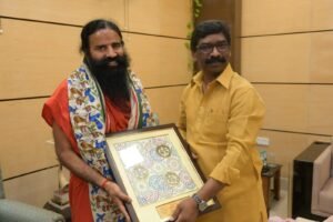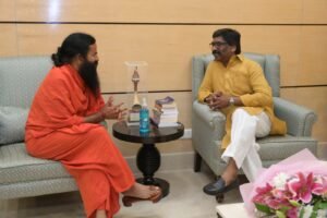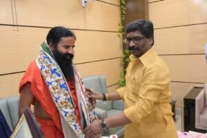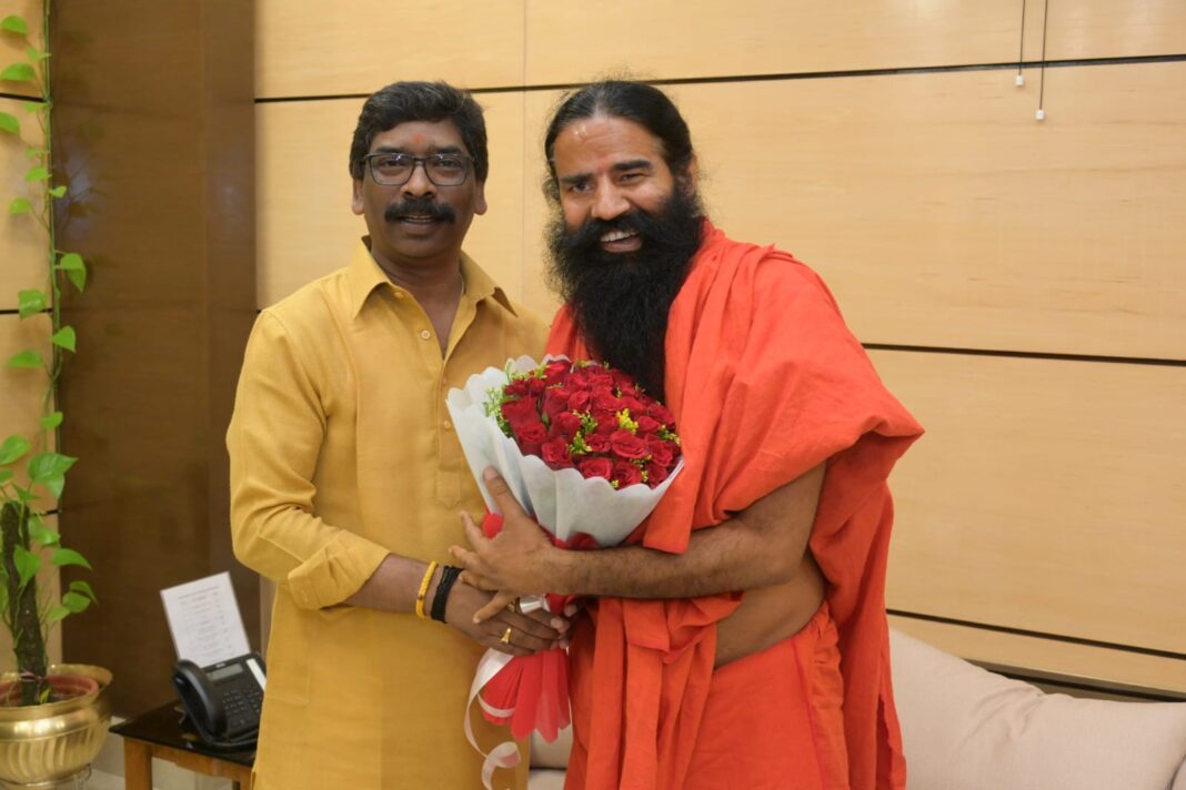 योग गुरु बाबा रामदेव ने आज झारखंड में मुख्यमंत्री हेमंत सोरेन से मुलाकात की . बाबा रामदेव ने मुख्यमंत्री से मुलाकात के बाद हरिद्वार के तर्ज पर भविष्य में झारखंड में हेल्थ वेलनेस सेंटर खोलने की ओर इशारा किया है. बाबा रामदेव ने झारखंड में शिक्षा और स्वास्थ्य के क्षेत्र में काम करने की इच्छा जाहिर की है . सूत्रों के हवाले से मिली जानकारी के मुताबिक मुख्यमंत्री हेमंत सोरेन ने भी बाबा रामदेव को सकारात्मक जवाब दिया है . पतंजलि का स्कूल – कॉलेज से लेकर यूनिवर्सिटी तक खोलने का प्रस्ताव है . बाबा रामदेव ने कहा कि प्रति दिन हरिद्वार सेंटर में 10 हजार लोग पहुंचते है . इनमें से पांच हजार लोग बिहार – झारखंड – पश्चिम बंगाल सहित दूसरे राज्यों से है . उनका झारखंड में सेंटर खोल कर इलाज किया जा सकता है .