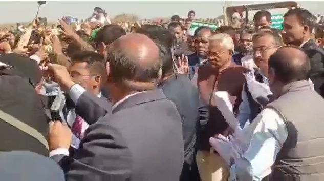 समाधान यात्रा पर औरंगाबाद पहुंचे मुख्यमंत्री नीतीश कुमार पर कुर्सी फेंकी गई. नीतीश कुमार पर यह कुर्सी बारूण प्रखंड के कंचनपुर में फेंकी गई है. कंचनपुर में मुख्यमंत्री पंचायत सरकार भवन का उद्घाटन करने आये थे. उद्घाटन करने के दौरान ही किसी ने कुर्सी फेंकी जो उनके सामने गिरी। देखिएं तस्वीर……