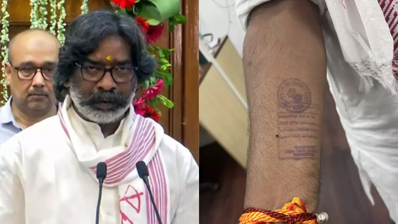 झारखंड सीएम ने अपने हाथ पर कैदी की मुहर की तस्वीर पोस्ट की और इसे लोकतंत्र के सामने आने वाली चुनौतियों का प्रतीक बताया. सोरेन ने बताया कि जेल से रिहा होने पर जेल अधिकारियों ने उनके हाथ पर यह मुहर लगाई थी.