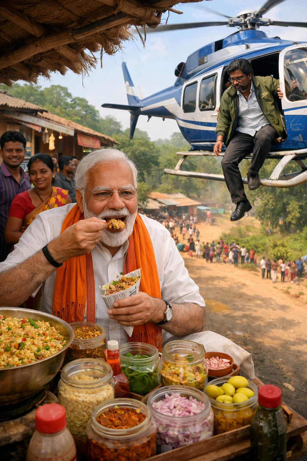 PM Modi Jhalmudi : झाड़ग्राम: पश्चिम बंगाल के झाड़ग्राम में चुनावी सरगर्मियों के बीच एक नया और अनोखा सियासी विवाद खड़ा हो गया है. प्रधानमंत्री नरेंद्र मोदी का रविवार को एक दुकान पर रुककर ‘झालमुड़ी’ का स्वाद लेना विपक्षी दल तृणमूल कांग्रेस (TMC) के निशाने पर आ गया है. TMC ने आरोप लगाया है कि प्रधानमंत्री के इस ‘अचानक’ कार्यक्रम विस्तार की वजह से झारखंड के मुख्यमंत्री हेमंत सोरेन और उनकी पत्नी कल्पना सोरेन के हेलिकॉप्टर को झाड़ग्राम में उतरने की इजाजत नहीं दी गई.
