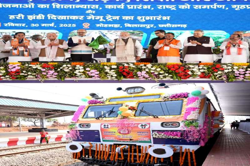 प्रधानमंत्री नरेंद्र मोदी ने आज छत्तीसगढ़ के मोहभट्टा बिलासपुर में आयोजित कार्यक्रम के दौरान वीडियो कॉन्फ्रेंसिंग के जरिए अभनपुर-रायपुर मेमू ट्रेन सेवा का शुभारंभ किया। इस अवसर पर प्रधानमंत्री मोदी ने छत्तीसगढ़ में 2,695 करोड़ रुपये की लागत से पूरी हो चुकी चार रेल परियोजनाओं को राष्ट्र को समर्पित किया और 7 रेल परियोजनाओं का शिलान्यास किया।