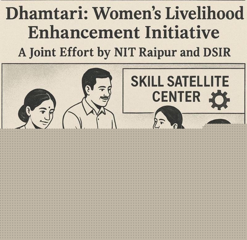 धमतरी : महिलाओं के कौशल विकास और आजीविका संवर्धन के लिए धमतरी में महिलाओं की आजीविका संवर्धन के लिए एन.आई.टी. रायपुर और डी.एस.आई.आर. की साझी पहल की है । डी.एस.आई.आर. का छत्तीसगढ़ ही नहीं बल्कि भारत में पहला प्रोजेक्ट है ।