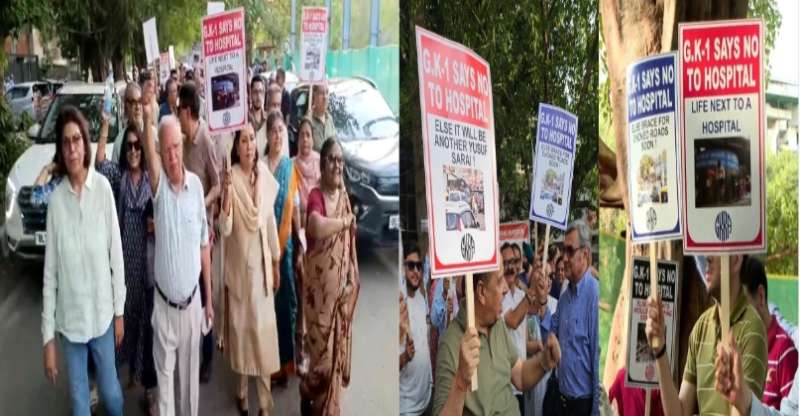 नई दिल्ली: दक्षिणी दिल्ली के ग्रेटर कैलाश पार्ट-1 स्थित अर्चना परिसर में प्रस्तावित 400 बेड के निजी अस्पताल के निर्माण को लेकर स्थानीय लोगों ने विरोध प्रदर्शन किया. इस दौरान सैंकड़ों लोग सड़क पर उतरे और जमकर नारेबाजी की. प्रदर्शन में भाजपा विधायक शिखा राय आप नेता व पूर्व विधायक सौरभ भारद्वाज भी शामिल हुए.