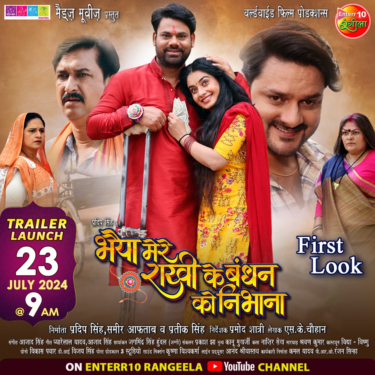 फिल्म के फर्स्ट लुक को सोशल मीडिया पर बहुत सकारात्मक प्रतिक्रियाएं मिल रही हैं. दर्शक बेसब्री से ट्रेलर का इंतजार कर रहे हैं ताकि फिल्म की कहानी और इसके किरदारों के बारे में और अधिक जान सकें. फिल्म के पी आर ओ रंजन सिन्हा ने बताया कि फिल्म “भैया मेरे राखी के बंधन को निभाना” के फर्स्ट लुक ने दर्शकों के बीच उत्सुकता बढ़ा दी है और अब सभी की निगाहें 23 जुलाई को रिलीज होने वाले ट्रेलर पर टिकी हैं. यह फिल्म जल्द ही सिनेमाघरों में दस्तक देगी और भाई-बहन के रिश्ते को एक नए आयाम पर ले जाएगी. फिल्म के संगीतकार आजाद सिंह हैं और गीतकार प्यारेलाल यादव व आजाद सिंह हैं. नृत्य कानू मुखर्जी, संकलन प्रकाश झा और एक्शन श्रवण कुमार का है.
