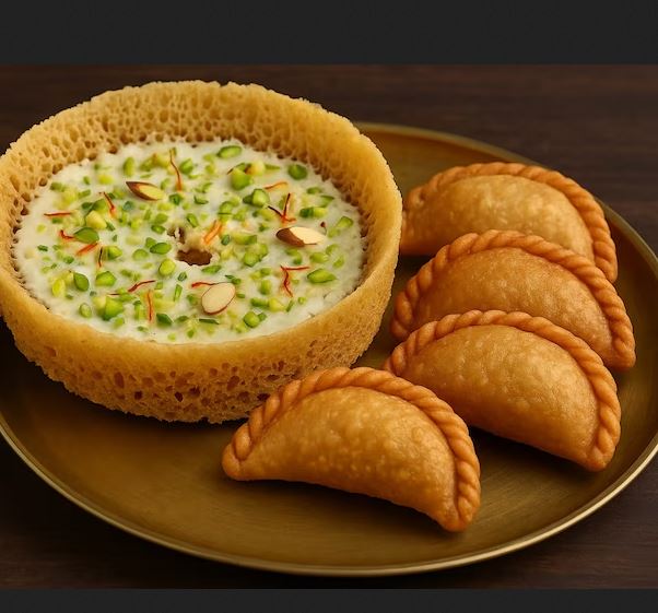हरियाली तीज का त्योहार सिर्फ व्रत और पूजा का नहीं, बल्कि घर में बने खास पकवानों से भी जुड़ा होता है. इस दिन महिलाएं व्रत रखती हैं, सजती-संवरती हैं और शाम को शिव-पार्वती की पूजा करती हैं. पूजा के बाद घर में मिठाइयों और पारंपरिक व्यंजनों की खुशबू फैल जाती है. तीज के दिन कुछ खास डिशेज बनाई जाती हैं जो स्वाद के साथ-साथ परंपरा से भी जुड़ी होती हैं. इन डिशेज को परिवार के साथ मिलकर खाना और बांटना त्योहार की मिठास को दोगुना कर देता है. आजकल की भागदौड़ वाली लाइफ में जब कुछ आसान और झटपट बनने वाली रेसिपीज़ की बात हो, तो तीज जैसे त्योहार पर भी स्वाद और सेहत दोनों को बैलेंस करना जरूरी हो जाता है. इन पारंपरिक पकवानों में प्यार और परंपरा दोनों का तड़का लगता है. बच्चे हो या बड़े, तीज पर बनने वाले घेवर और गुजिया सभी को बेहद पसंद आते हैं.