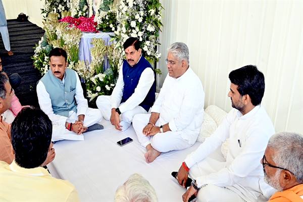 भोपाल : मुख्यमंत्री डॉ. मोहन यादव ने रविवार सुबह केंद्रीय पर्यावरण, वन एवं जलवायु परिवर्तन मंत्री भूपेंद्र यादव के गुरुग्राम, जमालपुर पहुंचकर उनके पिता कदम सिंह के निधन पर शोक संवेदना व्यक्त की। उन्होंने स्व. यादव के चित्र पर पुष्प अर्पित कर श्रद्धांजलि दी। मुख्यमंत्री डॉ. यादव ने शोक संतप्त परिवार को ढांढस बंधाया और दिवंगत आत्मा की शांति के लिए प्रार्थना की है। उप मुख्यमंत्री राजेन्द्र शुक्ल ने भी श्रद्धा सुमन अर्पित किये।