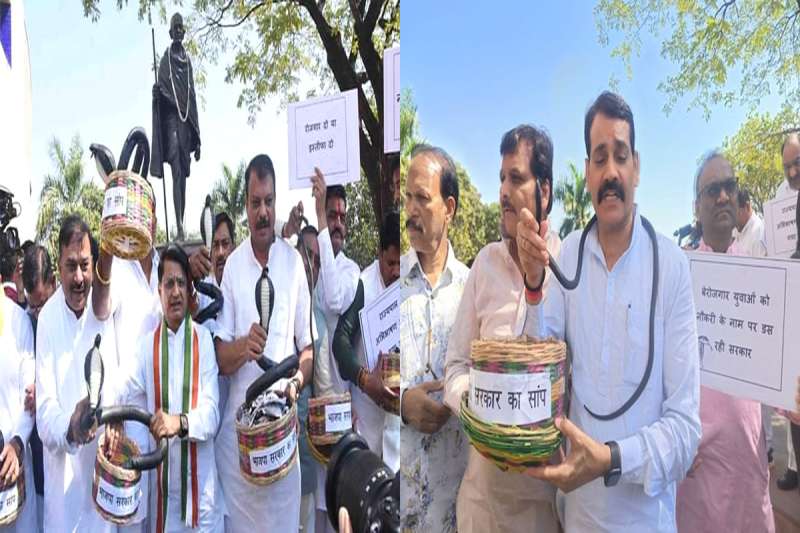 भाजपा सरकार पर हमला बोलते हुए नेता प्रतिपक्ष ने कहा कि आज प्रदेश का युवा रोजगार के लिए भटक रहा है। पुलिस, शिक्षा, सिंचाई और स्वास्थ्य जैसे तमाम सरकारी विभागों में भर्तियां रुकी हुई हैं। अकेले शिक्षा विभाग में 70 हजार से ज्यादा पद खाली हैं, लेकिन सरकार इस ओर ध्यान नहीं दे रही है। उन्होंने कहा कि प्रदेश में बेरोजगारी बढ़ रही है। युवाओं को रोजगार नहीं मिल रहा है। उमंग सिंघार ने आगे कहा कि भाजपा सरकार नौकरी के नाम पर युवाओं को सांप की तरह डस रही है, यह सरकार सांप की तरह कुंडली मारे बैठी है और प्रदेश के युवाओं के लिए सांपनाथ बन गई है। उन्होंने कहा कि इसीलिए हमने सरकार को जगाने के लिए युवाओं के रोजगार के मुद्दे पर यह सांकेतिक प्रदर्शन किया है।