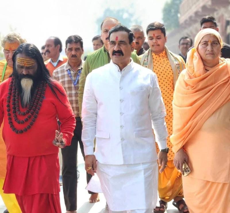 ग्वालियर।  बलात्कार के आरोपी बहुचर्चित दाती बाबा का मप्र के पूर्व गृहमंत्री डॉ नरोत्तम मिश्रा ने बाजे-गाजे के साथ स्वागत किया. दाती महाराज मिश्रा के गृहनगर डबरा में बनवाए गए नवगृह मंदिर के प्राण प्रतिष्ठा समारोह में शामिल होने पहुंचे है। डॉ मिश्रा ने अपने इंस्ट्राग्राम अकाउंट पर बलात्कार के आरोपी बाबा के साथ अपनी तस्वीरें सगर्व पोस्ट की हैं। आपको बता दें कि दाती महाराज बलात्कार मामले में दोषमुक्त नहीं हुए हैं।