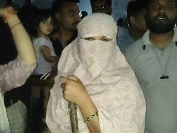 हाथ में लाठी लेकर विरोध प्रदर्शन कर रही थी महिलाएं