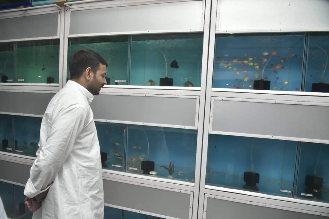राजनीतिक उठापटक के बीच बिहार के वन पर्यावरण जलवायु परिवर्तन मंत्री तेजप्रताप यादव गुरुवार को अलग ही रंग में दिखाई दिये.आमतौर पर अपनी दबंग छवि के लिए मशहूर तेजप्रताप यादव आज अपने मंत्रालय के अनुरुप पटना में पंछियों की खरीद बिक्री करने वाले बाजार में छापेमारी करते दिखाई दिये. पटना में अवैध रुप से कैद करके जानवरों की खरीद बिक्री पर नकेल कसने के लिए चार दिन से अभियान चलाया जा रहा है. इसी अभियान के तहत मंत्री तेजप्रताप यादव ने पेट शॉप्स में बिक्री के लिए कैद किये गए पक्षियों एवं कछुओं को आजाद करवाया. पटना के कुर्जी,फुलवारी,अनीसाबाद,चितकोहड़ा सहित कई इलाकों में सघन अभियान चलाया गया और 2 हजार से भी अधिक अलग अलग प्रजातियों के पक्षियों को मुक्त कराया.