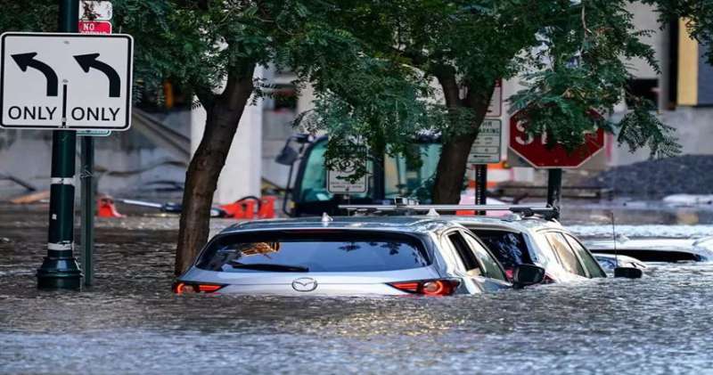न्यूयॉर्क। न्यूयॉर्क शहर में भारी बारिश के कारण कई इलाकों में बाढ़ आ गई है। सडक़ों, मेट्रो स्टेशन और गैस स्टेशनों पर पानी भर गया। जिसके बाद न्यूयॉर्क के मैनहट्टन में मेट्रो सेवा रोक दी गई। कई इलाकों में 7 इंच तक बारिश हुई। बाढ़ के कारण कुछ फ्लाइट भी रद्द कर दी गई, जिससे लोग घंटों तक जाम में फंसे रहे। राष्ट्रीय मौसम एजेंसी ने न्यूयॉर्क शहर के पांच इलाकों में बाढ़ की चेतावनी जारी की है। न्यूयॉर्क का 16 प्रतिशत हिस्सा बाढ़ से प्रभावित है। न्यू जर्सी के गवर्नर फिल मर्फी ने मंगलवार को इमरजेंसी की घोषणा की। रेस्क्यू टीमों को मदद के लिए तैनात किया गया है। हालांकि, अभी तक किसी के हताहत होने की खबर नहीं है।